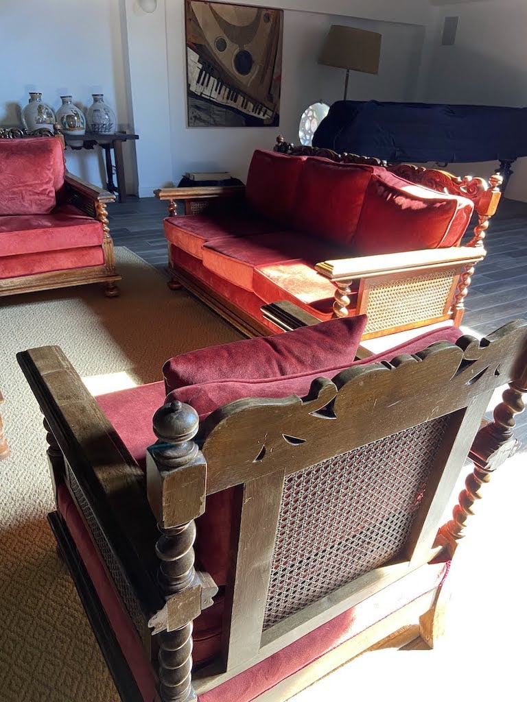 - Olive Terrace – espacio abierto bajo un toldo con vistas a los viñedos. Mesa grande. Adecuada en tiempo cálido y sin viento. Suele utilizarse para tomar un aperitivo antes de comer o de una excursión. Si ocupamos este espacio, no van otros huéspedes.