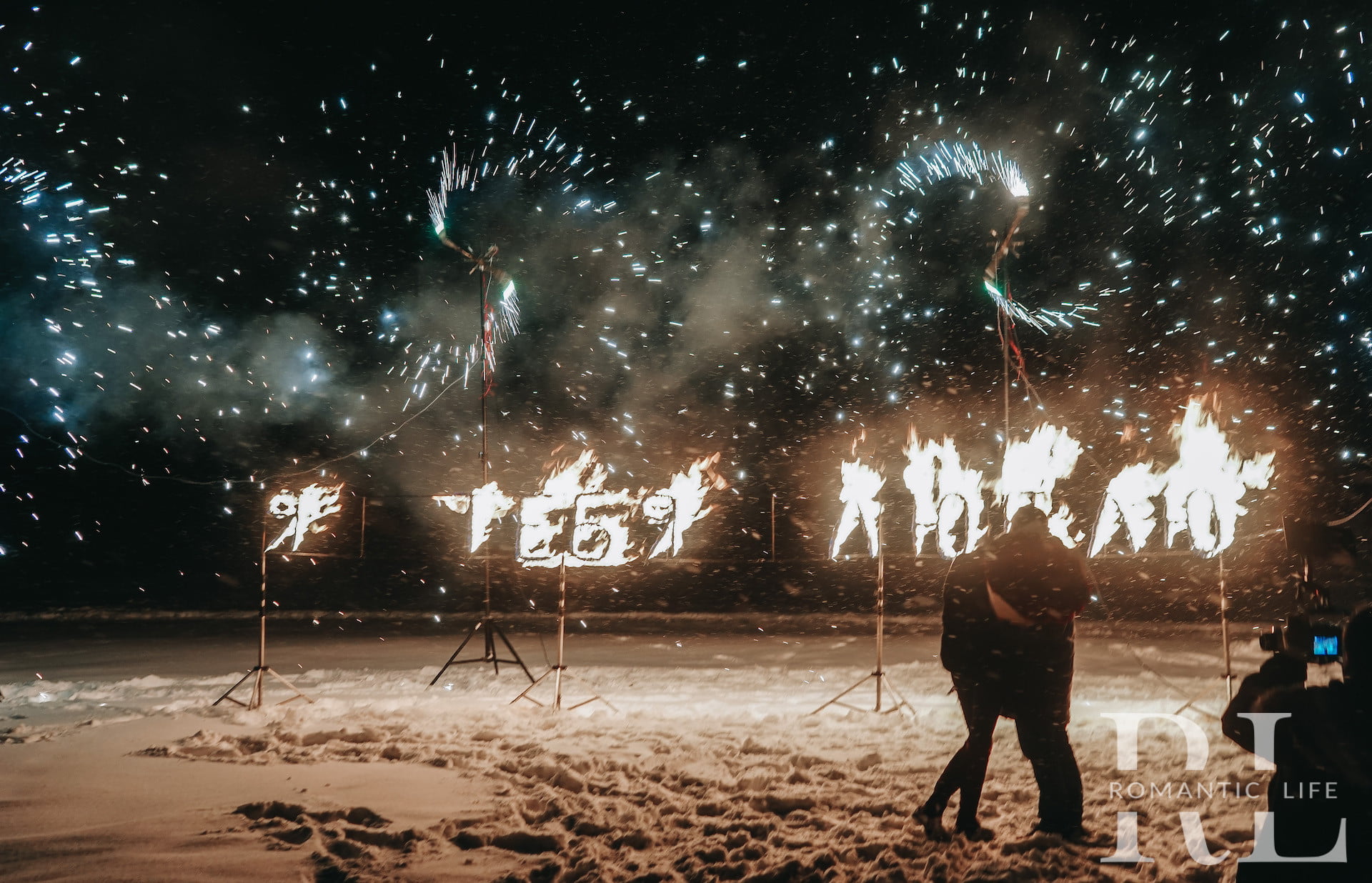 - 2 пиротехнических фонтана по бокам надписи