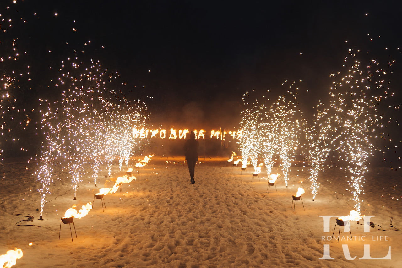 Вы можете выбрать признание в любви или предложение руки и сердца, и мы превратим эти моменты в волшебные сцены, окутанные огненными буквами и пламенем страсти. Наша команда подарит вам шоу, которое останется в вашей памяти навсегда, создав уникальный атмосферный фон для самых важных моментов вашей жизни.